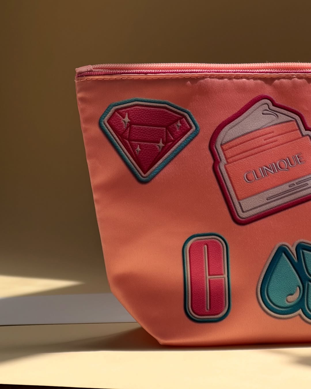 کیف کلینیک با جنس ساتن و زیپ روان. برند clinique حک شده و جادار.